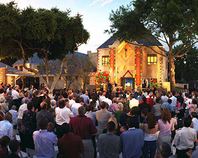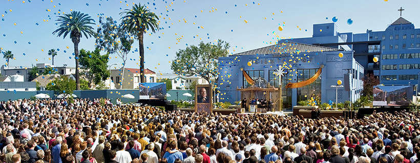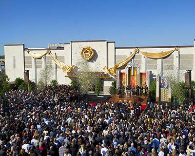 Religiöse Dienste werden in ablenkungsfreien und ästhetischen Kursräumen und Räumen für spirituelle Seelsorge geboten. Es gibt auch Bibliotheken, Buchläden, Film- und Seminarräume sowie große Kapellen für Sonntagsandachten, Hochzeiten, Namengebungszeremonien und andere Zusammenkünfte der Gemeinde.