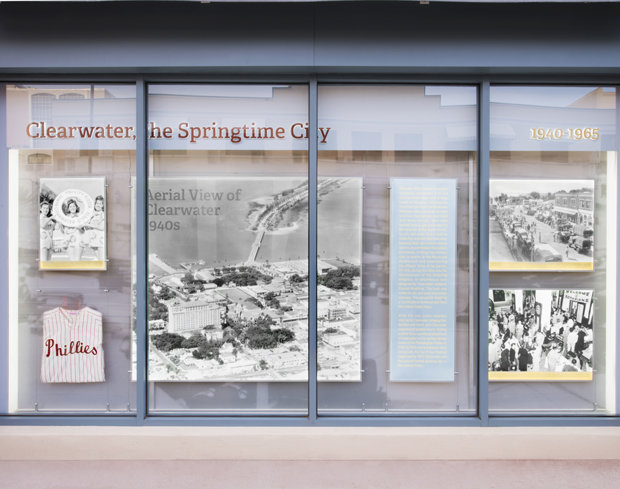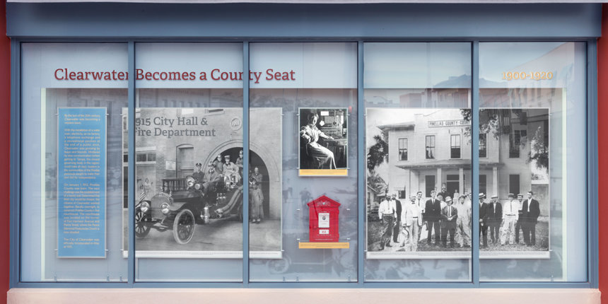 Als Tribut an die Geschichte von Clearwater hat die Kirche eine beständige Ausstellung etabliert, die sich der gesamten Front des Gebäudes entlang der Cleveland Street und der Fort Harrison Avenue erstreckt. Die Ausstellung enthält Fotos, informative Displays und historische Artikel, welche die Geschichte der Stadt von ihren frühesten Tagen bis zur Gegenwart zeigen. Unter den vielen Meilensteinen in der Geschichte Clearwaters, die in der Ausstellung gezeigt werden, sind folgende: