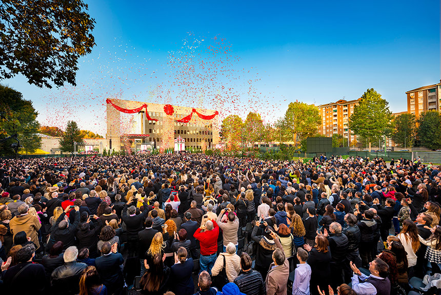 Tausende kommen im italienischen Kultur- und Modezentrum Mailand zusammen, um die Eröffnung der größten Idealen Scientology Organisation auf dem Planeten zu feiern.