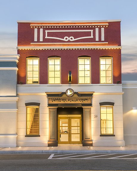 Das neue Center von United for Human Rights an Clearwaters Hauptdurchfahrtstraße, der Fort Harrison Avenue, steht nun als Hauptquartier für die Verwirklichung der Menschenrechte zur Verfügung. Es stellt einen standhaften Einsatz für breit angelegten Unterricht und breitgefächerte Information bezüglich der Menschenrechte im Bereich der Tampa Bay dar.