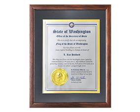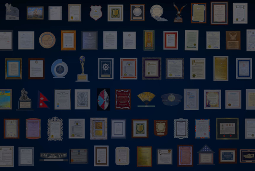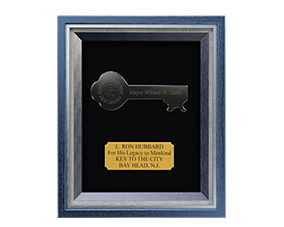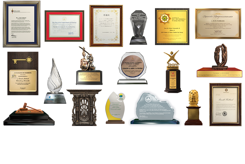 Mr Miscavige präsentierte dann eine Kaskade von Auszeichnungen, die L. Ron Hubbard zu Ehren seines Geburtstags verliehen wurden: