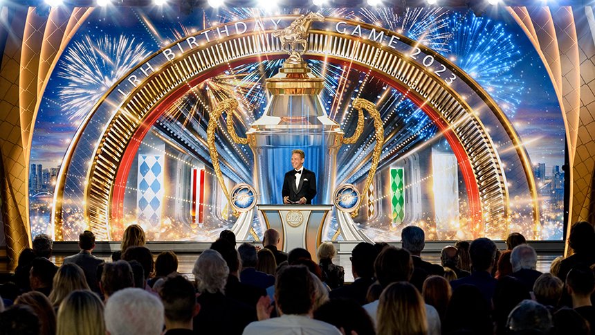 Dann folgte der Moment, um die Champions des LRH-Geburtstagsspiels bekannt zu geben. Die Bühne verwandelte sich in einen in Rosen gerahmten Kreis der Gewinner, mit funkelnden Lichtern, Renntrikots und glänzenden Pokalen. Das Geburtstagsspiel führt die Tradition fort, Mr Hubbard mit dem Geschenk der Expansion in jeder Scientology-Kirche zu feiern.
