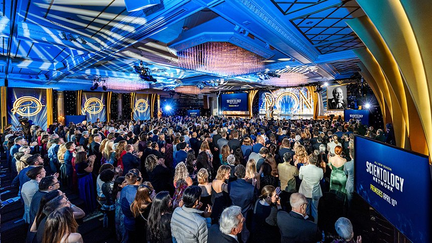 Ein Abend, an dem Scientologists vom europäischen Kontinent, dem Vereinigten Königreich, aus ganz Asien, Australien, Neuseeland, Lateinamerika und den ganzen Vereinigten Staaten anreisten, um den einen Mann zu feiern, der Millionen von Menschen Hoffnung, Hilfe und gesteigerte Fähigkeit bringt: L. Ron Hubbard.