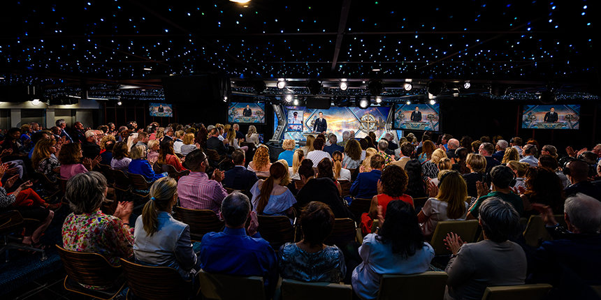 „Gemäß nautischer Tradition ist dies der Orientierungsabend, da wir unser Gestirn anpeilen und den Kurs für die kommende Woche festlegen“, begann Mr David Miscavige, kirchliches Oberhaupt der Scientology Religion. „Und im Laufe dieser Woche werden Sie Zeuge einer seismischen Welle künftiger Scientology Kirchen, die aufsteigen, um zu verkünden: Lasst die Inseln zum Meer werden.“